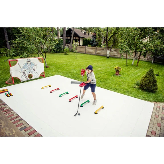 – Facilement transportable et peut-être utilisé n’importe ou  (en le plaçant sur n’importe quelle surface plane) pour l’entraînement de hockey sur glace et du roller hockey.
