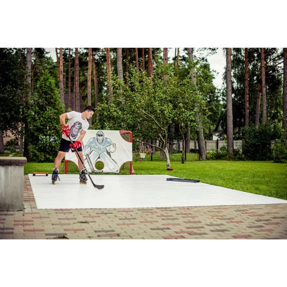 – Facilement transportable et peut-être utilisé n’importe ou (en le plaçant sur n’importe quelle surface plane) pour l’entraînement de hockey sur glace et du roller hockey.