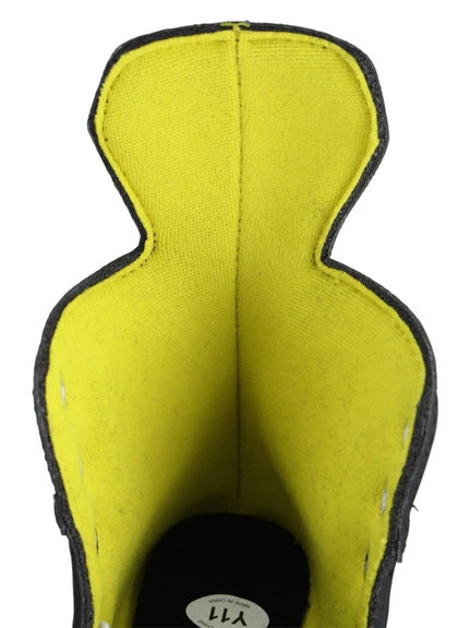 – Languette : En feutre noir 30 oz 2 parties pour Ă©viter de tourner sur le tibia.